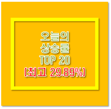 오늘의 상승률 TOP20 (최고 29.89%)